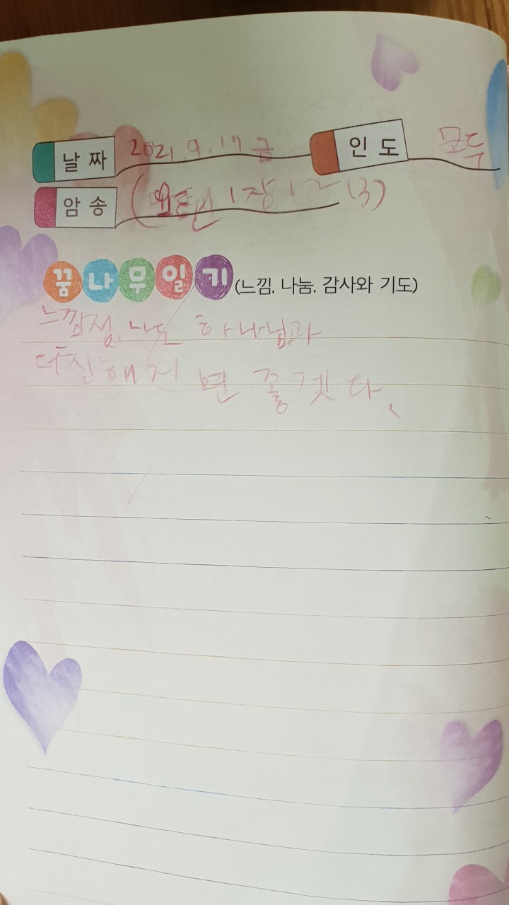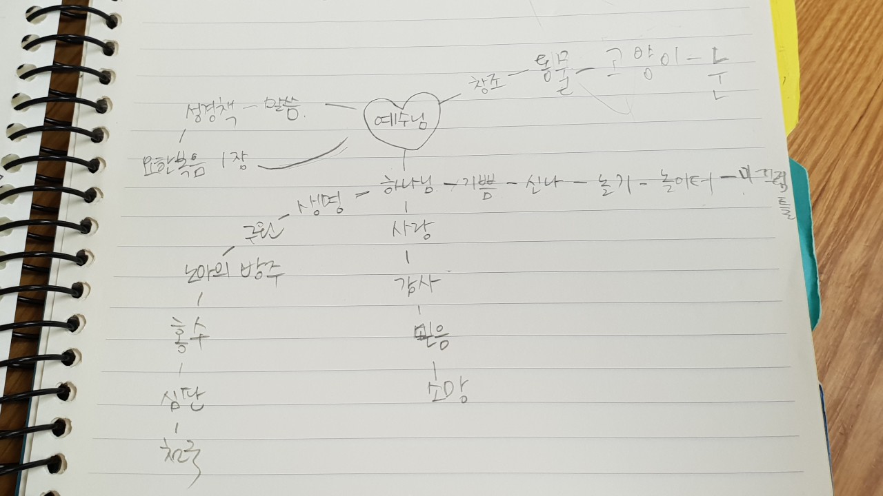 꿈송을 너무 좋아하는 막내에요~ㅎ로마서 3장 23절, 24절과 요한복음 1장 1절~13절 말씀암송후에 암송일기장에 느낀점 적고 마인드맵 같이 했어요~